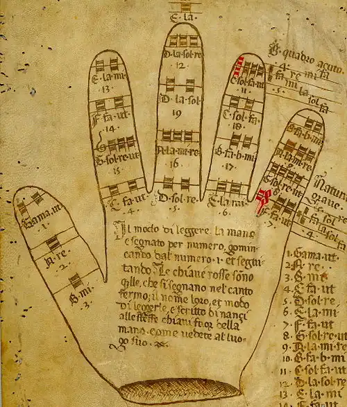 V tomto článku byl použit překlad textu z článku Mano guidoniana na italské Wikipedii.