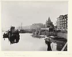 Část kanálu od St. Antoniedijk po Oude Vecht v Nigtevechtu, výstavba kanálu Amsterdam-Merwede (kanál Amsterdam-Rýn). Hliněný box ve východní hrázi kanálu v komunitním poldru. Pohled na bagr, 16. listopadu 1887. -