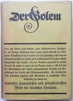 - Golem poprvé vyšel tiskem na pokračování v literárním měsíčníku Die weißen Blätter, konkrétně v prvním ročníku v číslech 4 (prosinec 1913) až 11/12 (červenec/srpen 1914), knižně pak román vyšel až krátce před Vánoci 1915 v nakladatelství Kurta Wolffa (Kurt Wolf Verlag).[14]