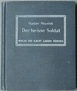 Když byl Meyrink v roce 1902 propuštěn z vyšetřovací vazby, tak mohl začínající spisovatel vykázat už několik drobných publikací, jejichž počet se měl záhy rozrůst. Jen v časopise Simplicissimus vyšlo v průběhu roku 1902 osm autorových textů, v následujícím roce pak dalších devět. A právě tyto krátké satirické skici se staly základem Meyrinkových prvních knih. Sbírka Der heiße Soldat und andere Geschichten (Žhavý voják a další příběhy) vyšla v mnichovském nakladatelství Alberta Langena v květnu roku 1903 a roku 1904 ji následovaly Orchideen (Orchideje).[10]