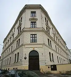 ![]() Pohled na areál gymnázia z Keplerovy ulice od tramvajové zastávky "Pohořelec" | |