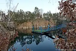 Na místě dnešní "houpačky" stával do konce 80. let trup vojenského vrtulníku Mi-4. Tento trup vrtulníku byl zavěšen na speciálním jeřábu, kterým bylo umožněno přemisťování trupu, tak i jeho změnu výšky nad vodní hladinu. Hlavním účelem tohoto trenažéru bylo co nejvěrněji navodit pro vojenské potápěče seskoky do vody z vrtulníku.