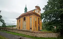 - Kostel svatého Jakuba Apoštola stojí na návrší nad návsí na místě staršího gotického kostela, zničeného roku 1724 požárem. Byl postaven téhož roku. V jeho průčelí jsou v nikách plastiky svatých Prokopa a Vojtěcha. V nice v závěru kostela je socha svatého Kryštofa.[17] Stavba prošla renovací roku 1948 a v letech 1993–1994 dostala novou střešní krytinu. Fasáda byla renovována v roce 2016.
