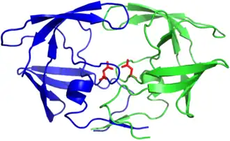 - ↑ Davies DR. The structure and function of the aspartic proteinases. Annual Review of Biophysics and Biophysical Chemistry. 1990, s. 189–215. Dostupné online. doi:10.1146/annurev.bb.19.060190.001201. PMID 2194475.