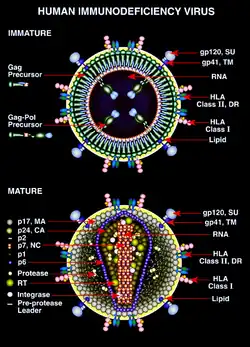 - ↑ Kohl NE, Emini EA, Schleif WA, Davis LJ, Heimbach JC, Dixon RA, Scolnick EM, Sigal IS. Active human immunodeficiency virus protease is required for viral infectivity. Proceedings of the National Academy of Sciences of the United States of America. July 1988, s. 4686–90. doi:10.1073/pnas.85.13.4686. PMID 3290901. Bibcode 1988PNAS...85.4686K.