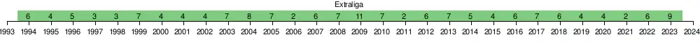 • 6. místo: 1993/94, 2006/07, 2011/12, 2015/16, 2017/18, 2021/22