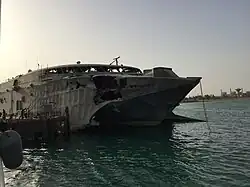 - ↑ a b c Former U.S. Navy HSV-2 Swift wrecked in Yemen missile attack [online]. Workboat.com [cit. 2019-08-19]. Dostupné online. (anglicky)