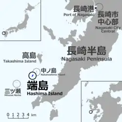 - ↑ BURKE-GAFFNEY, Brian. Hashima: The Ghost Island. Crossroads: A Journal of Nagasaki History and Culture. UWOSH, Summer 1996, s. 33–52. Dostupné online. ISSN 0919-6102.