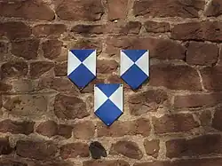 Značení třemi modrými štíty památky pod zvláštní ochranou (klášter Limburg, Německo)