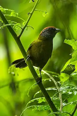 | strnádek olivový | Arremon castaneiceps (Sclater, 1859) syn. (Buarremon castaneiceps) (Lysurus castaneiceps) |