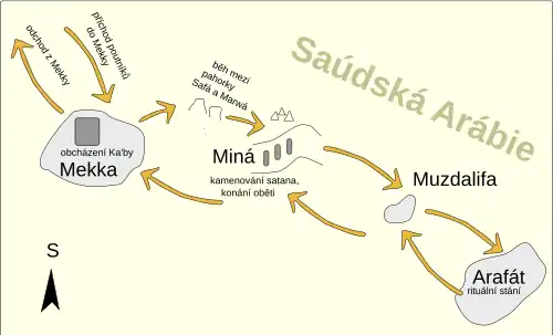 - ↑ a b c Zaostřeno na islám: Hadž (pouť) [online]. islamweb.cz [cit. 2008-09-08]. Dostupné online.