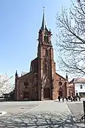 Farní kostel Saint-Georges z 12. století je nejdůležitější památkou města Haguenau. Je to trojlodní sloupová hala, patří do řady románských kostelů, kde se uplatnila nad křížením osmiboká věž, která pochází z roku 1523 a ve které visí dva nejstarší zvony v Alsasku pocházející z roku 1268. Tak jako ostatní stavby z doby vlády štaufských císařů (tzv. pozdně sálská architektura) má kostel žebrovou klenbu. Je to trojlodní bazilika s příčnou lodí z roku 1250, chórovým předstupněm a polokruhovými apsidami. V podélné lodi jsou střídavě realizovány pilíře a svazkovité polosloupy. Arkády s polokruhovým obloukem jsou z roku 1215, klenba chrámové lodi z roku 1609, ty v postranních lodích pocházejí ze 14. století, tři západní pole jsou z roku 1415, transept a chór z druhé poloviny 13. století. Chór byl zasvěcen v roce 1283. Tato část budovy je zpracována s výjimečnou péčí. Opěrné pilíře vchodu z kruhového náměstí byly kdysi opatřeny velkými sochami, částečně poplatnými slohu fasády ve Štrasburku. Tato díla jsou dnes v muzeu v Haguenau. Pečlivost výstavby se projevila u složitých flamboyantních kleneb dvou úchvatných kaplí: jižní kaple svatého Jakuba (1496) a na severu kaple Saint-Jean, vystavěná mistrem Stuckartem (1517). V chrámu jsou i díla (jedno 14 m vysoké) Friedricha Hammera (1523).