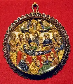 Roku 1978 byla při bagrování dvora u paláce Kühler Brunnen v Halle nalezena jedna destička románského relikviáře z doby kolem roku 1170 a k ní shledána druhá destička ve sbírce Muzea umění v Clevelandu[1], následně obě připsány k inventáři Hallských svátostí.