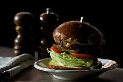 Hamburger (nebo pouze burger) je sendvič skládající se z grilované placky mletého masa, nejčastěji hovězího, vepřového, nebo kuřecího vloženého mezi napůl horizontálně rozkrojenou housku pomazanou omáčkou / (dresinkem). Kromě masa se mezi housky často přidává salát (např. hlávkový / ledový), rukola, sýr (čedar), slanina, cibule, okurka (nakládaná) a rajče jedlé.[1] Existuje však mnoho variant hamburgeru včetně bezmasých s rozmanitými ingrediencemi. Například hamburger obsahující sýr se nazývá cheeseburger, s kuřecím masem chickenburger. Navzdory pověsti amerického jídla neobsahuje nic, co by původně pocházelo z území USA. [2]