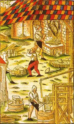 Kování na hamru bylo dříve jediný možný způsob, jak získat kujnou ocel z houbovitého polotovaru (podle čočkovitého tvaru nazývaného lupa) vznikajícího v dýmačce, jednoduché redukční peci používané před vynálezem vysoké pece.