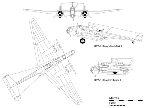 Na výrobě strojů se podílela rovněž firma Short Brothers & Harland Ltd. v Belfastu. Do motorových gondol byly instalovány kapalinou chlazené do H uspořádané čtyřiadvacetiválce Napier Dagger VIII o vzletovém výkonu 702 kW. Takto upravená subvarianta nesla označení Handley Page HP.53 Hereford.