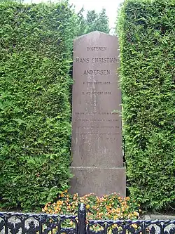 Je pochován na Assistenském hřbitově v Kodani ve čtvrti Nørrebro na pozemku rodiny Collinových. Andersenův pohřeb, jehož se zúčastnil i král Kristián IX., byl vyhlášen dnem národního smutku. Brzy se Hans Christian Andersen stal nejslavnějším Dánem všech dob a dánským národním symbolem. Navzdory tomu, že on sám Dánsko nazýval "zlým, sadistickým, satanským a proradným".[16] I kvůli tomu, že jakákoli kritika či jen letmá výtka se ho bolestně dotýkala a nebyl schopen ji přijmout.