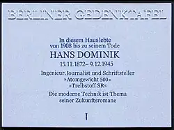 - ↑ Hans Dominik Leben und Werk - Projekt Gutenberg. gutenberg.spiegel.de [online]. [cit. 2017-12-28]. Pozn.: Čerpáno z: Killy Literaturlexikon. Dostupné online. (německy)