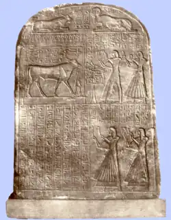 Stela Pasenhor k úmrtí býka Apise v 37. roce vlády Šešonka V. Acheperre 22. dynastie -