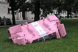 Jednou z prvních výraznějších akcí bylo opakované natírání tanku č. 23, který byl umístěn na podstavci jako pomník na náměstí Sovětských tankistů (dnes náměstí Kinských) na pražském Smíchově, narůžovo. Poprvé tank přetřel narůžovo výtvarník David Černý. Poté, co byl tank přetřen na původní, zelenou barvu, jej podruhé narůžovo natřela skupina poslanců Federálního shromáždění. Z náměstí byl později tank odstraněn a v růžovém nátěru vystaven ve vojenském technickém muzeu v Lešanech. V roce 2000 jej muzeum v rámci rekonstrukce exponátu natřelo narůžovo potřetí.