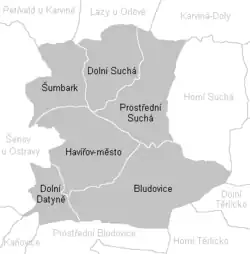 - ↑ Mapa Havířov - přehled správního uspořádání. Opava: Geodézie, n. p., 1978.