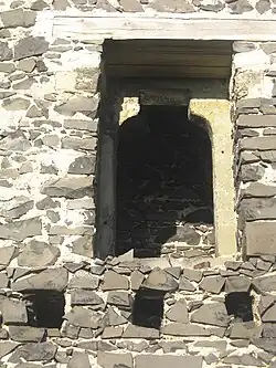 Přístupová cesta k hradu situovanému na protáhlém kopci vedla ze severozápadu. První brána byla zřejmě jen kulisová a byla prolomena v hradbě klesající po úbočí kopce severním směrem od horního hradu. Cesta od brány stoupala k dolnímu hradu podél hradby, která ji chránila ze severu. Do dolního hradu návštěvník vstupoval další kulisovou branou. Po vstupu do nádvoří se musel obrátit téměř o 180°, protože cesta k hornímu hradu se zde obracela k západu.[6]