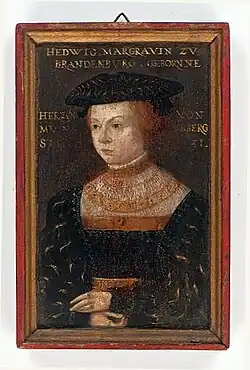 - ⚭ 1548 Jan Jiří Braniborský (11. 9. 1525 Berlín – 8. 1. 1598 tamtéž), braniborský kurfiřt od roku 1571 až do své smrti[5]