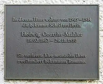 - ↑ Hedwig Courths-Mahler 1867-1950. www.dhm.de [online]. [cit. 2016-07-16]. Dostupné online.