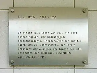 - ↑ HEINKE, Lothar; BEMMER, Ariane. Berlin: Anklopfen bei Heiner Müller [online]. www.tagesspiegel.de, 2004-01-09 [cit. 2016-03-28]. Dostupné online.