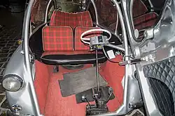 Do vozu se vešli 2 dospělí a 2 děti[2], které měly lavici vzadu nad motorem.[3] Přístup dozadu umožňovalo sklopné přední opěradlo.[4][5] Pro nesklopný volant se zdál složitý.[6] Dveře se však daly otevřít dokořán.[7] Mezi dospělé vepředu se v případě potřeby vešlo další menší dítě jako u Isett.[8][9] Dozadu se vešel kufr, na další zavazadla byl potřeba nosič.[10][11] Skládací plátěný velkoryse rozměrný vrchlík střechy dovoloval nouzový výstup. Přední boční okénka se dala vyklápět.