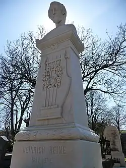 Manželka Mathilde (1815–1883) s ním zůstala až do jeho smrti 17. února 1856. Heine ji jmenoval univerzální dědičkou. Spolu jsou pohřbeni na hřbitově ve čtvrti Montmartre v hrobce vybudované v roce 1901. Zdobí ji básníkova mramorová busta od dánského sochaře Louise Hasselriise a text Heineho básně Kde? vyrytý na třech stranách náhrobku.