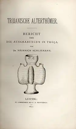 - Trojské starožitnosti. Zpráva o vykopávkách v Tróji. F.A. Brockhaus, Lipsko 1874