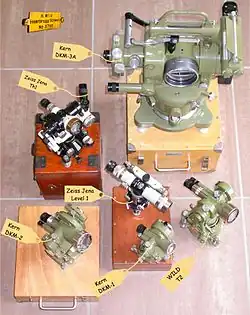 - ↑ DE HILSTER, Nicolàs. 1924 Carl Zeiss Th1 Theodolite. web site of Nicolàs de Hilster [online]. Nicolàs de Hilster [cit. 2016-09-03]. Dostupné online.