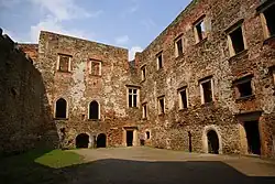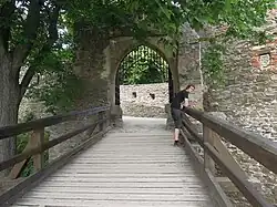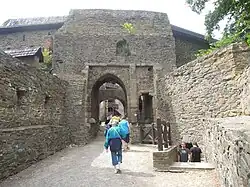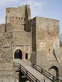 Po obléhání Matyášem Korvínem byl nově zabezpečen vstup do předhradí. Před původní branou byl postaven přístupový koridor, do kterého se vstupovalo hranolovou věží spojenou s oblou baštou. Východní stranu koridoru navíc zajistil příhrádek zvaný psinec s drobnou zaoblenou baštou v nároží hradby. Ve stejné době byl také rozšířen severní palác v hradním jádře, jehož opevnění zesílily tři bašty. Z nich se dochovala jen severovýchodní bašta, zatímco jihovýchodní zanikla a severozápadní bašta byla pohlcena budovou paláce.[5]