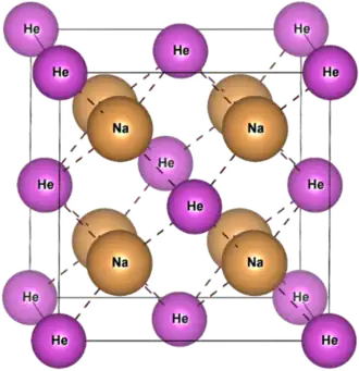 - ↑ a b c d e DONG, Xiao; OGANOV, Artem R.; GONCHAROV, Alexander F.; STAVROU, Elissaios; LOBANOV, Sergey; SALEH, Gabriele; QIAN, Guang-Rui. A stable compound of helium and sodium at high pressure. Nature Chemistry. 6 February 2017, s. 440–445. doi:10.1038/nchem.2716. PMID 28430195. Bibcode 2017NatCh...9..440D.