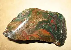 - ↑ a b c Bloodstone [online]. mindat.org [cit. 2017-03-19]. Dostupné online. (anglicky)