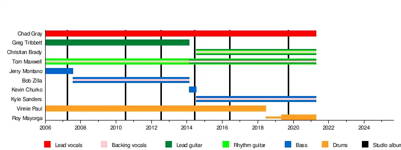 - Greg Tribbett – sólová a rytmická kytara, doprovodný zpěv (2006–2014)
