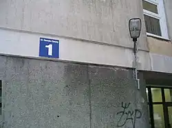 - ↑ Slovo batuta polsky znamená „taktovka“; v okolí se nacházejí ulice Sonaty, Jana Sebastiana Bacha atp.