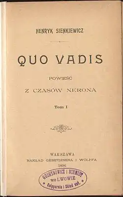 • Quo vadis, Šolc a Šimáček, Praha 1916, překlad Jaroslav Rozvoda, v tomto překladu vydalo toto nakladatelství román ještě roku 1921.
