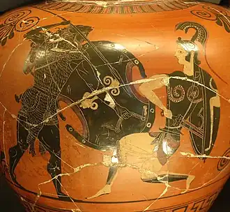 - vázových maleb jsou tisíce, nejproslulejší jsou Héraklés v boji s Géryonem, Héraklés v zápase s nemejským lvem