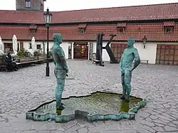 Před Muzeem Franze Kafky je instalována Čůrající fontána, kterou vytvořil český umělec David Černý v roce 2004.[8]