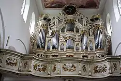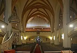 II/P | 30 | nové varhany s využitím většiny píšťal z předchozích varhan z roku 1878 od Urbana Kreuzbacha, prospekt zvětšen a bohatě ozdoben, firmou Eule několikrát předisponovány a roku 1978 rozšířeny (aktuální dispozice II/P/33) |