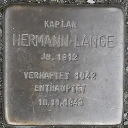 Dne 15. června 1942 byl Hermann Lange zatčen gestapem. Spolu s ním byli uvězněni jeho spolubratři kněží Prassek a Müller a protestantský pastor Stellbrink. Lange sdílel se Stellbrinkem celu. Po ročním vyšetřování byl odsouzen k trestu smrti a 10. listopadu 1943 v 18.26 hod. sťat gilotinou v Hamburku.