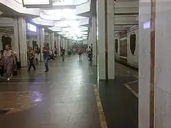 Stanice je trojlodní, kdy pilíře jsou obloženy bílým a hnědým mramorem.