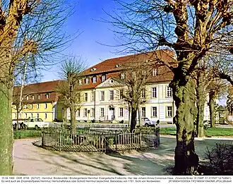 - ↑ RICHTER, Hedwig. Pietismus im Sozialismus : die Herrnhuter Brüdergemeine in der DDR. Göttingen: Vandenhoeck & Ruprecht, 2009. 400 s. (Kritische Studien zur Geschichtswissenschaft ; Bd. 186). ISBN 978-3-525-37007-0. Kapitola Herrnhuts Zerstçrung 1945, s. 61. (německy)