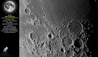 - ↑ Antonín Rükl: Atlas Měsíce, Aventinum (Praha 1991), kapitola 50 pohledů na Měsíc, str. 205, ISBN 80-85277-10-7