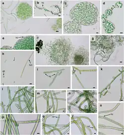 - Dichothrix – svazky vláken ve slizu, často žlutohnědé barvy