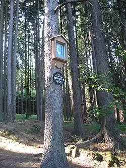 Místo vraždy Anežky Hrůzové s obrázkem Panny Marie Vyšehradské-Dešťové