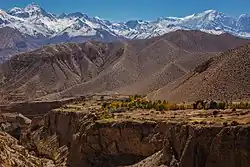 Zleva: Annapurna IV (7 525 m), Annapurna II (7 939 m) a Lamjung Himal (6 932 m)