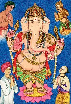 Vyobrazení oblíbeného boha Ganéši se zástupci čtyř hlavních indických kast